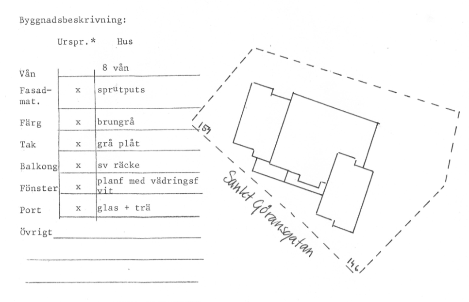Byggnaderna, som är sammankopplade genom ett underbyggt garage under ett gårdsrum, uppfördes som bostadshus för sjukvårdspersonal med butikslokaler i bottenvåning. Detta var det första exemplet på renodlad bostadsbebyggelse som uppfördes i Stadshagen, sedan tillkomsten av 1930-talslamellerna på Stadshagsberget. Husen har en tidstypisk arkitektur med avskalade och skarpt skurna volymer med platta tak. Byggnaderna har förändrats genom att balkonger glasats in, att franska balkonger byggts om till balkonger samt ett flertal interiöra ombyggnader.