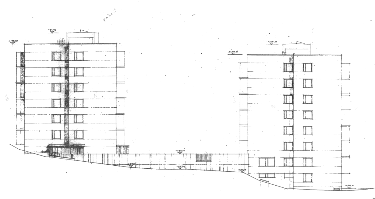 De två byggnaderna uppfördes 1964-1966 efter ritningar av arkitekterna Hultman & Malmo Ark AB. Byggherre var AB Stockholmshem och byggmästare Bygg-Calab AB.